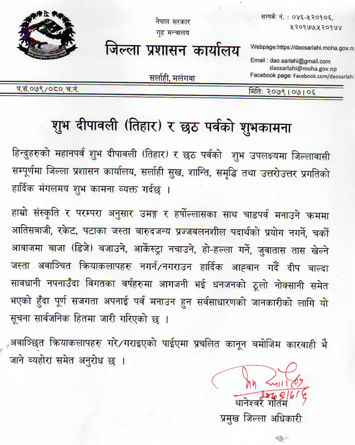 जिल्ला प्रशासन कार्यालय,सर्लाहीको शुभकामना सन्देश