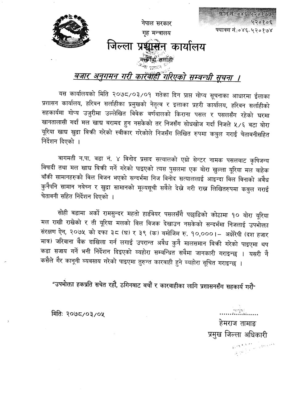 © सर्वाधिकार सुरक्षित जिल्ला प्रशासन कार्यालय, सर्लाही