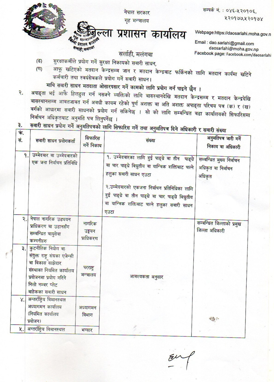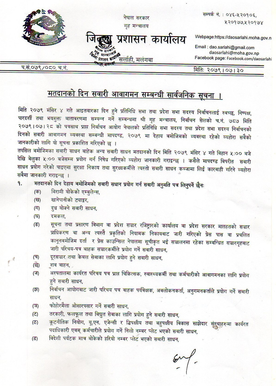 मतदानको दिन सवारी आवागमन सम्बन्धी सार्वजनिक सूचना ।