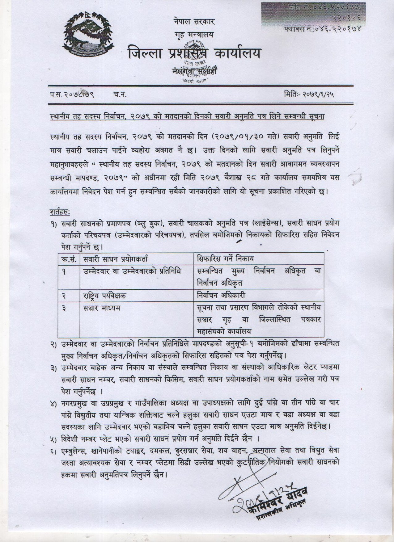 मतदानको दिन सवारी पास सम्बन्धी जरुरी सूचना ।