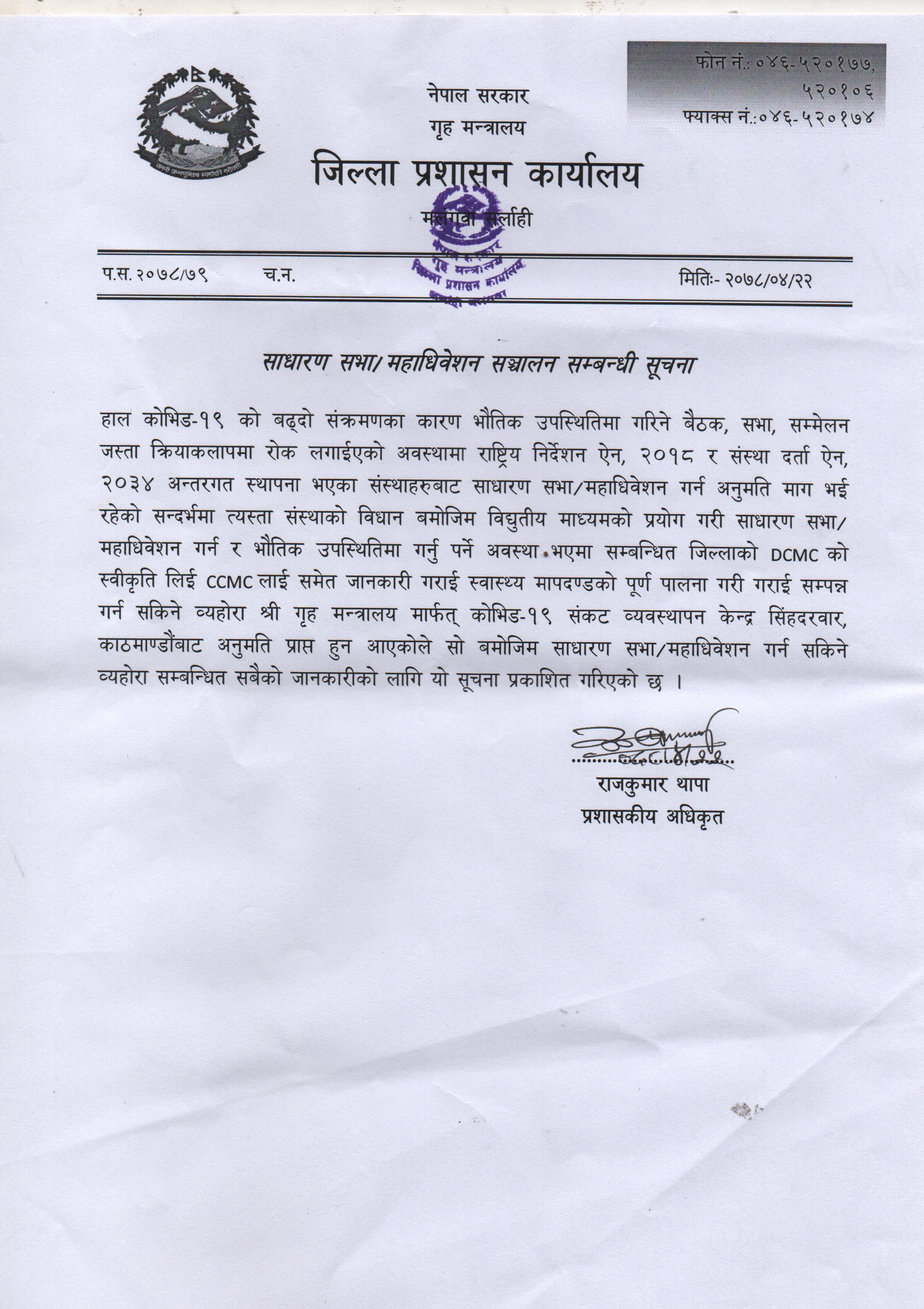 साधारण सभा/ महाधिवेशन सञ्चालन सम्बन्धी सूचना ।
