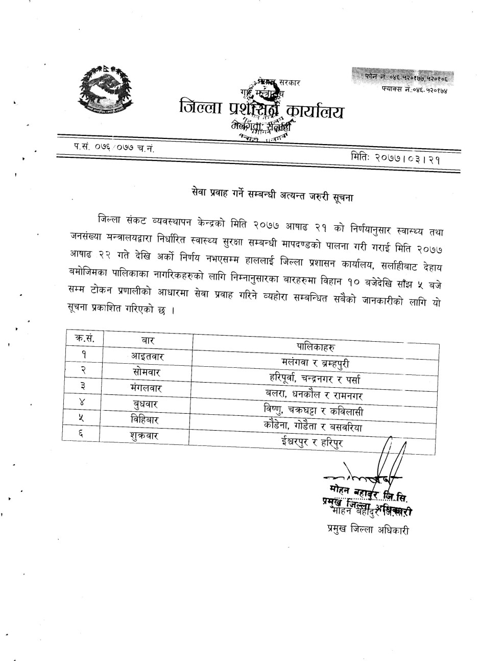 © सर्वाधिकार सुरक्षित जिल्ला प्रशासन कार्यालय, सर्लाही