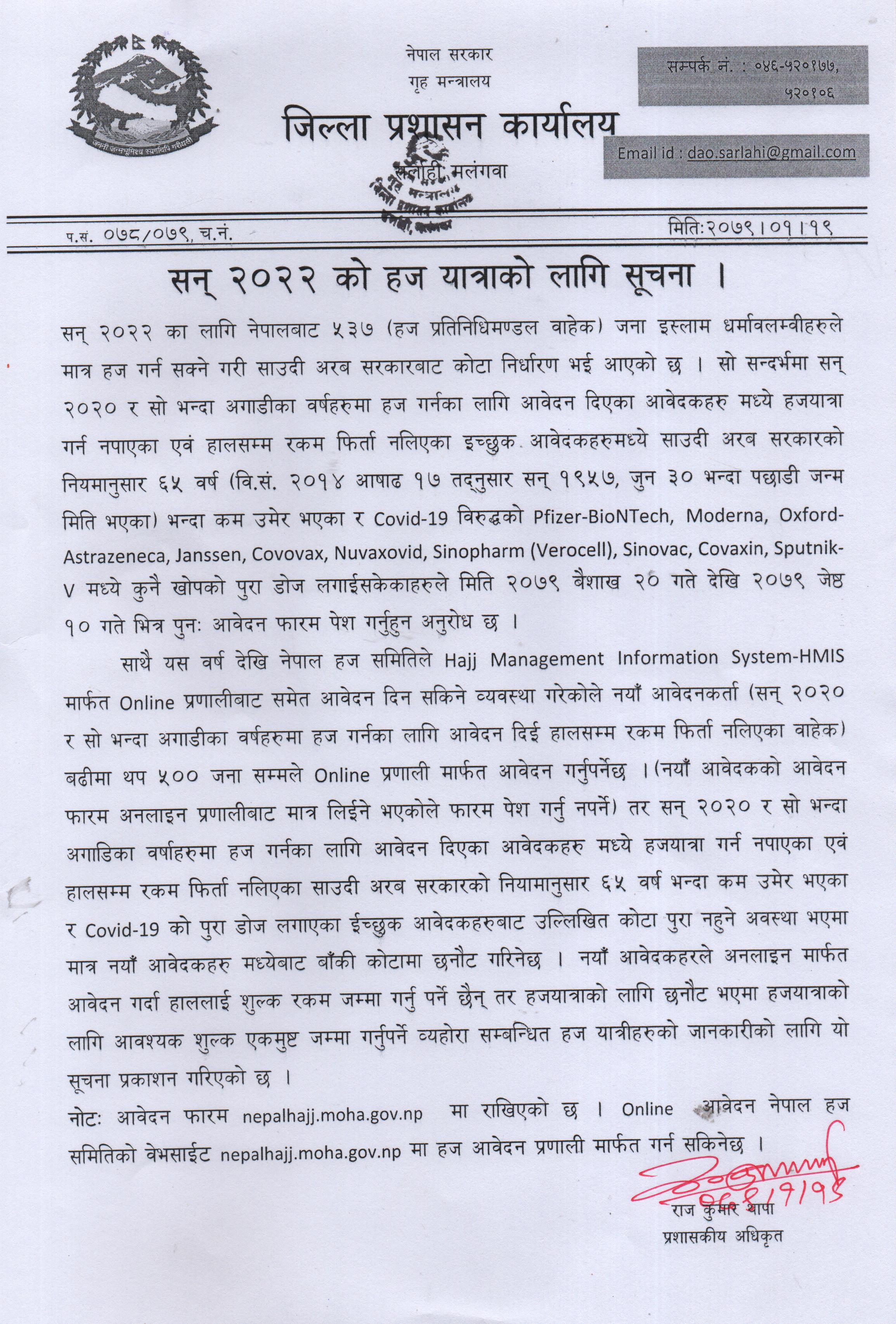 सन् 2022 को हज यात्राको लागि सूचना ।