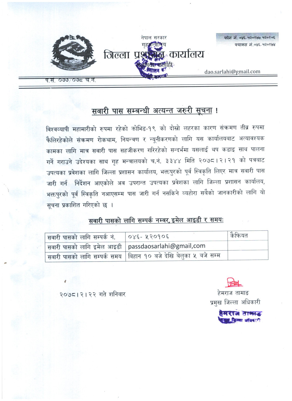 © सर्वाधिकार सुरक्षित जिल्ला प्रशासन कार्यालय, सर्लाही